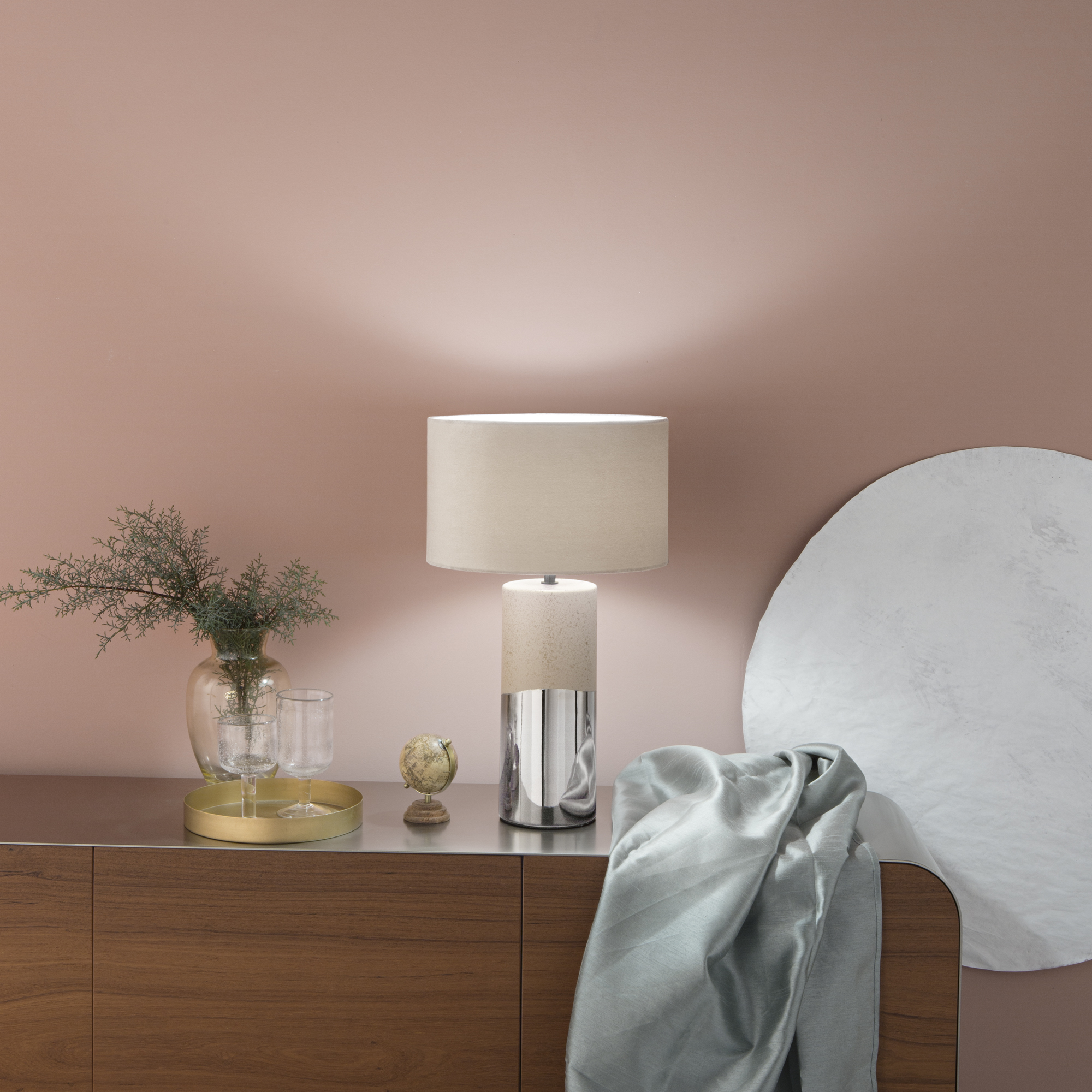 Stolní lampa TATAKA je definicí neoklasicistní elegance a jedinečnosti. Její keramická základna vyniká čistými liniemi a rafinovaností, zatímco růžové nylonové stínidlo přináší do prostoru harmonii a hloubku. Tento sofistikovaný design promění každé místo ve stylový a útulný koutek.