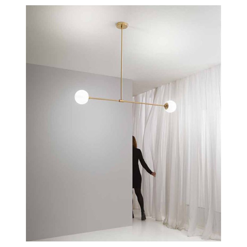 Závěsné svítidlo THEMYS 2xE14 od značky FAN Europe je ztělesněním moderní elegance v lineární podobě. Štíhlá zlatá konstrukce o délce 120 cm je zakončena dvěma opálovými skleněnými koulemi, které přinášejí měkké a příjemné světlo bez oslnění.