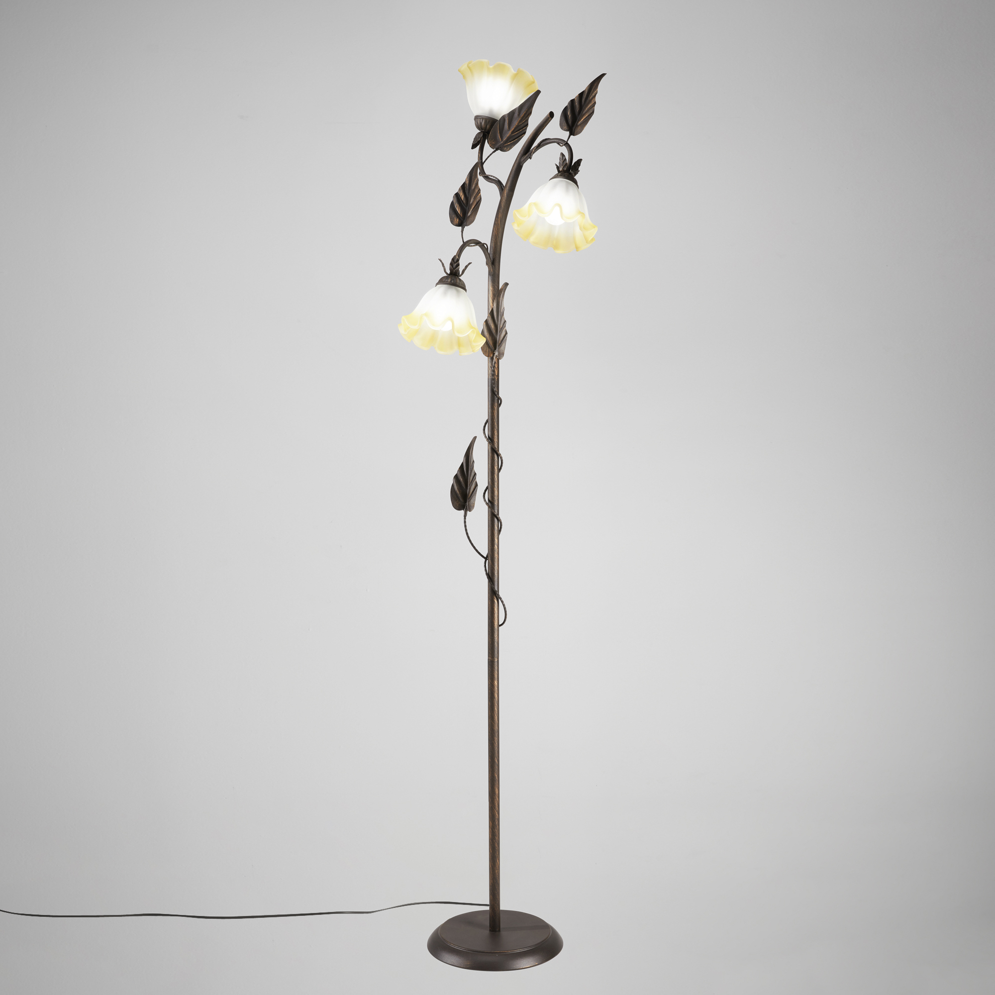 Dopřejte svému interiéru nádech přírody a elegance se stojací lampou TRISTANO od italské značky FAN EUROPE. Tento unikátní designový kousek v sobě snoubí uměleckou krásu a funkčnost – ručně vyráběné kovové dekorace v podobě listů a tři jemné skleněné difuzory ve tvaru květin připomínají okouzlující zahradu zalitou světlem.