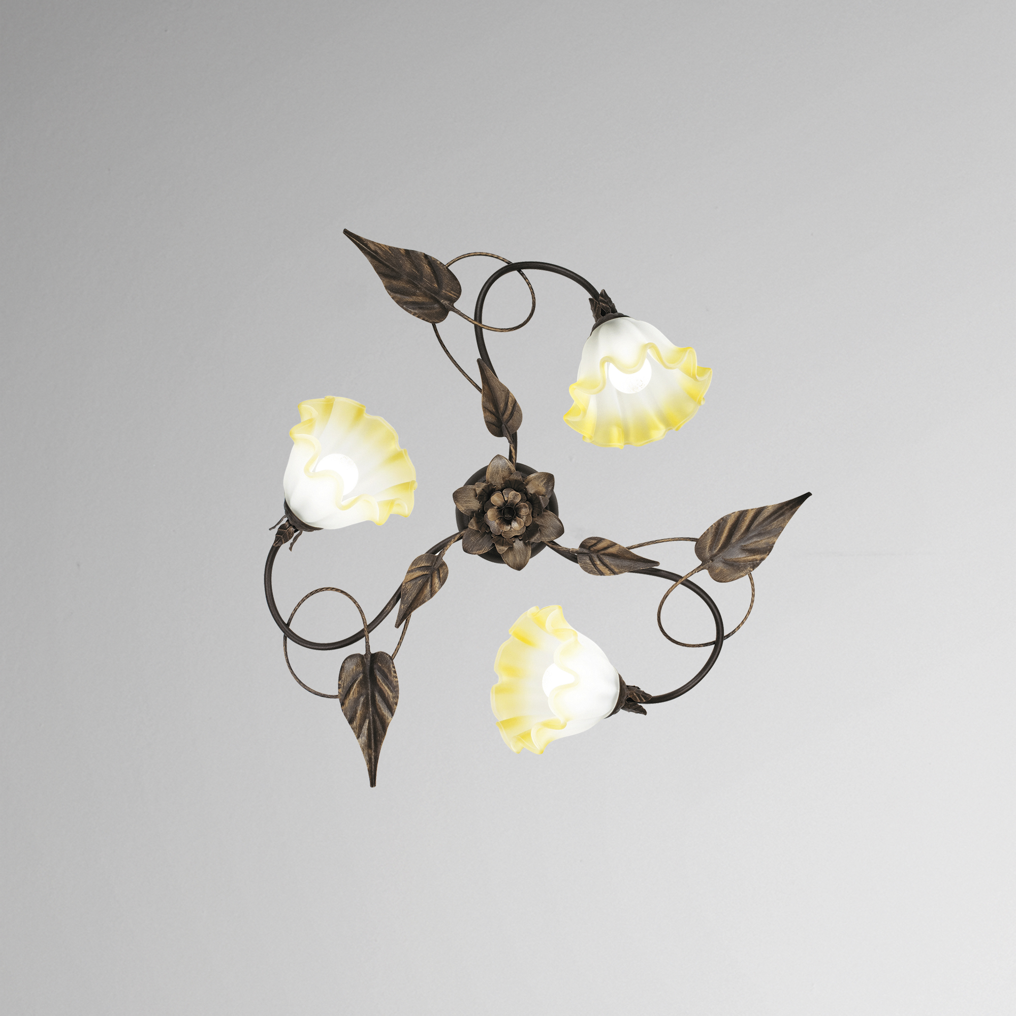Proměňte svůj domov v oázu elegance se stropním svítidlem TRISTANO od uznávané italské značky FAN EUROPE. Tento jedinečný kousek zaujme propracovanými detaily – ručně vyráběné dekorace listů a tři skleněné difuzory ve tvaru květin vytvářejí dojem luxusního uměleckého díla, které vnáší do prostoru harmonii a sofistikovanost.