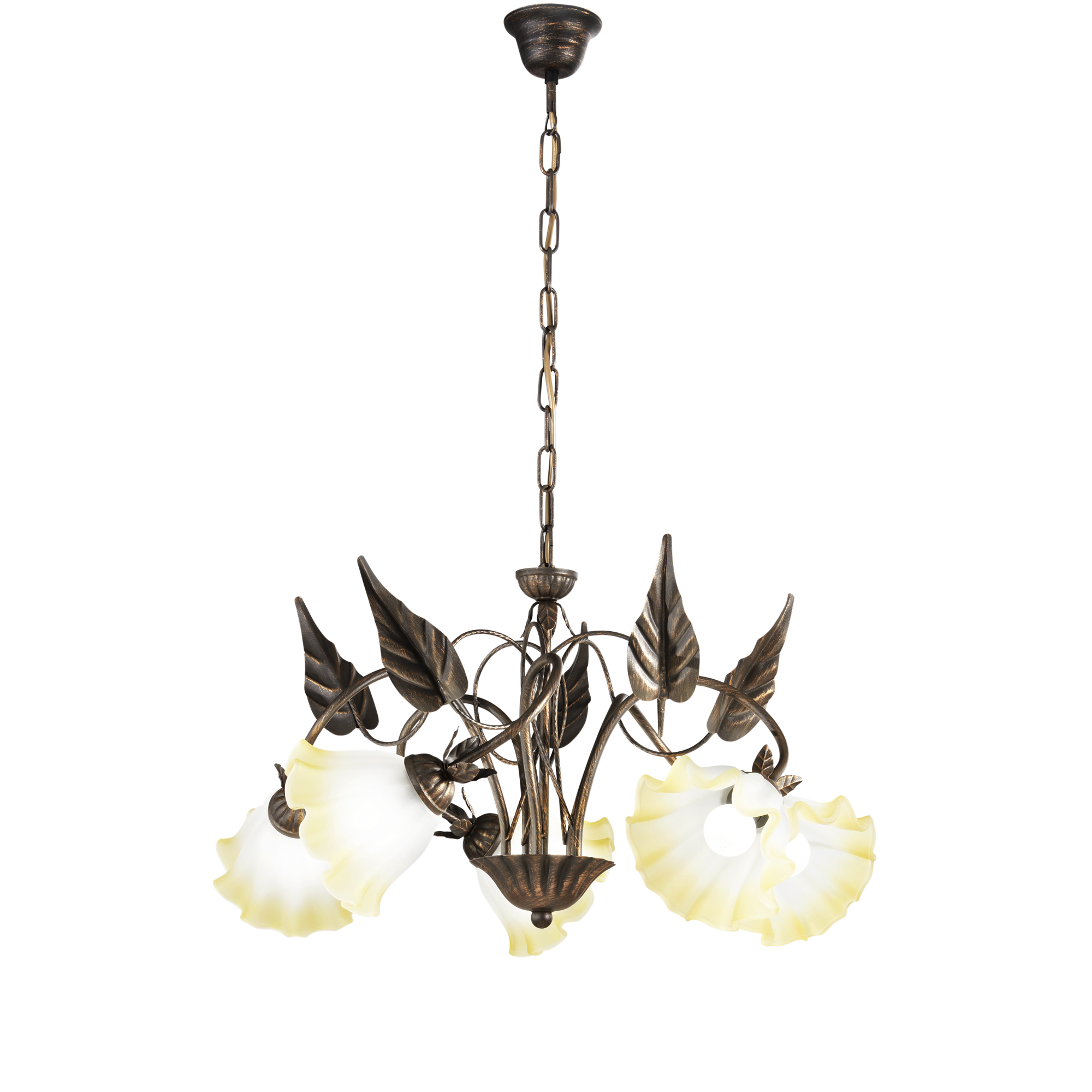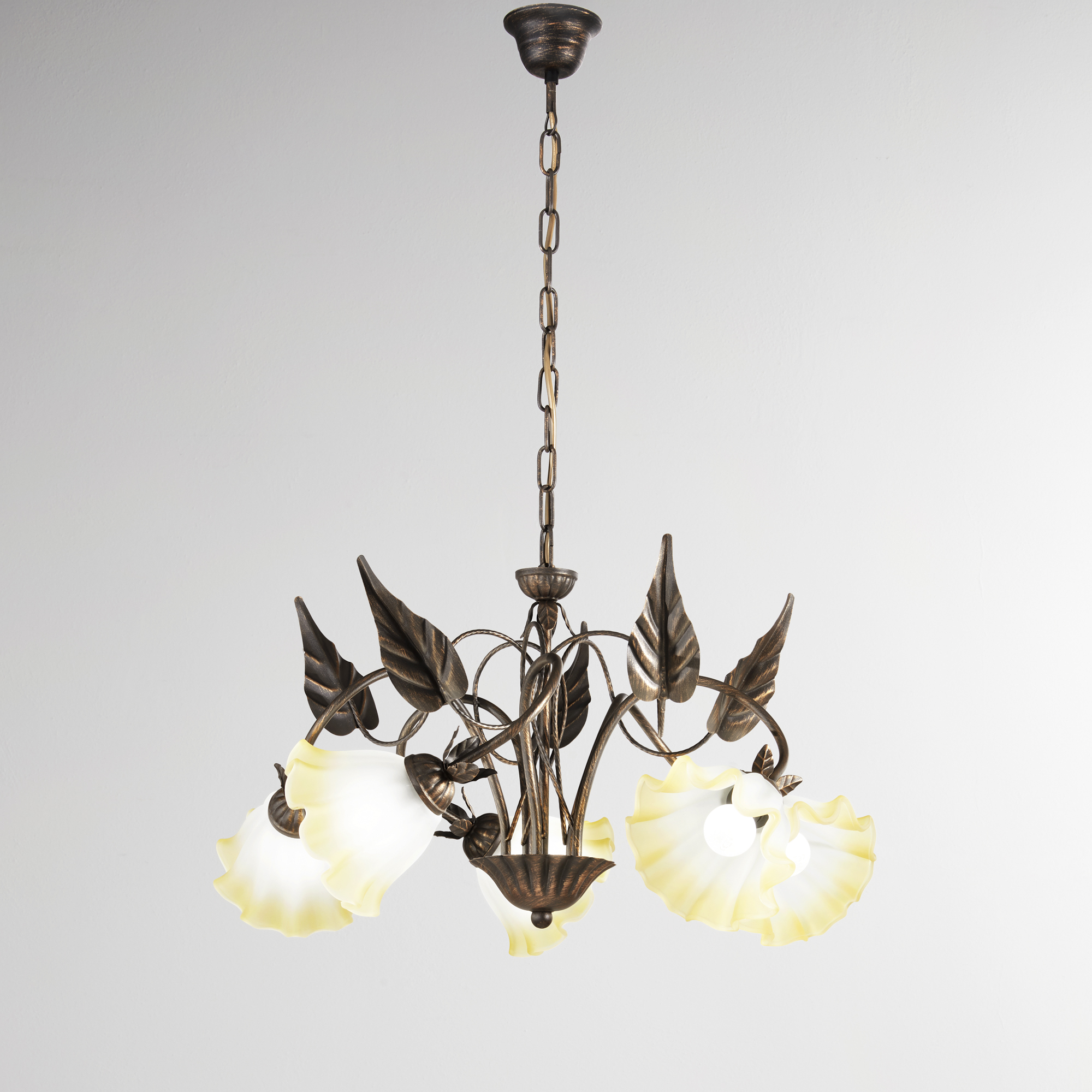Proměňte svůj domov v oázu elegance s závěsným svítidlem TRISTANO od uznávané italské značky FAN EUROPE. Tento jedinečný kousek zaujme propracovanými detaily – ručně vyráběné dekorace listů a pět skleněných difuzorů ve tvaru květin vytvářejí dojem luxusního uměleckého díla, které vnáší do prostoru harmonii a sofistikovanost.
