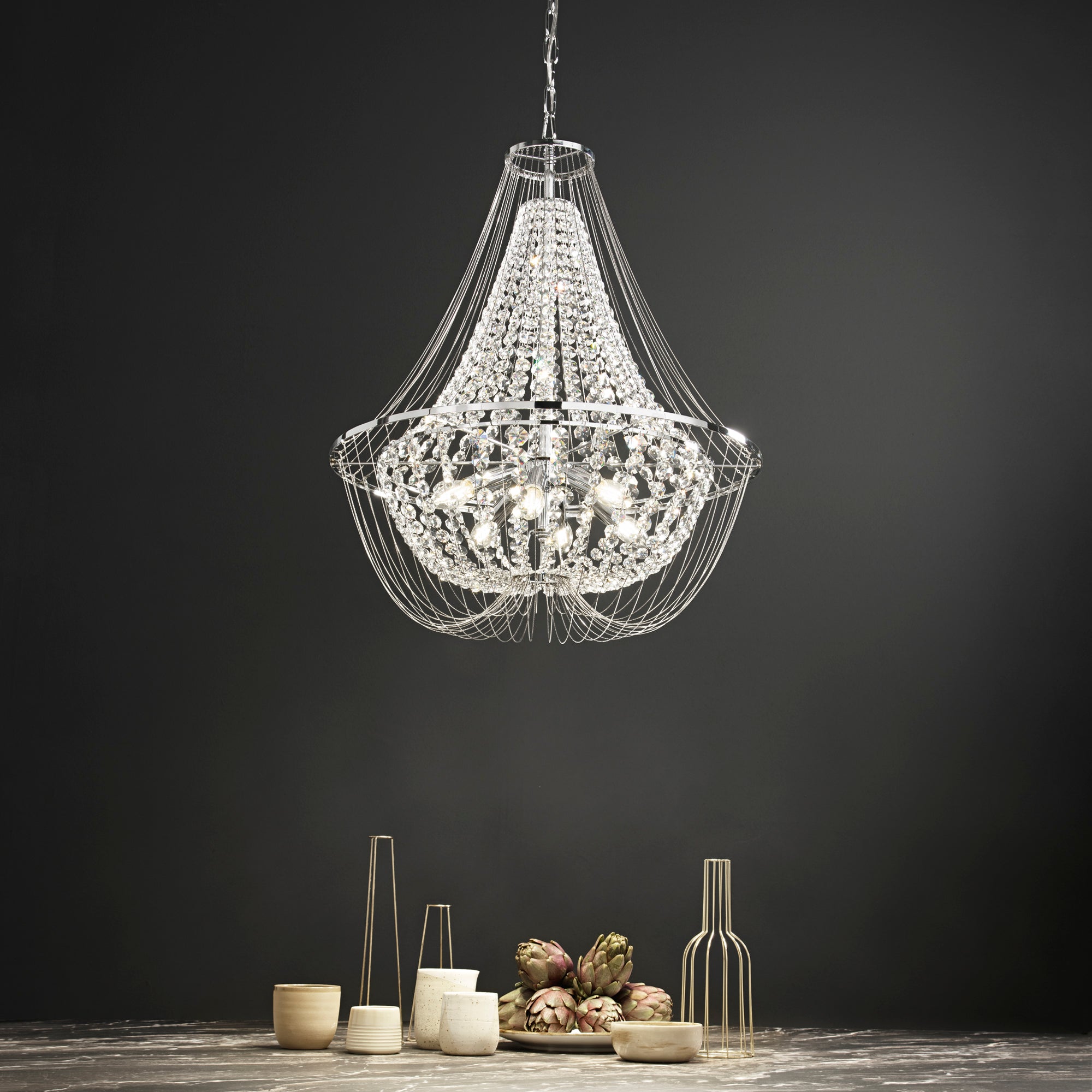 Chromová konstrukce přidává svítidlu moderní a čistý vzhled, který dokonale doplní jakýkoliv styl interiéru – od minimalistického až po klasický. Umístěte tento skvost nad jídelní stůl, do obývacího pokoje nebo do reprezentativního prostoru, a nechte jej stát se centrálním prvkem, který zaujme každého hosta.