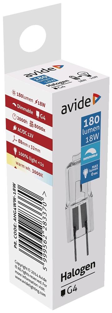Halogenová žárovka 18W, s paticí G4, na 12V určená pro reflektory, vyzařuje příjemné světlo a potěší skvělým poměrem cena/výkon.