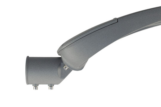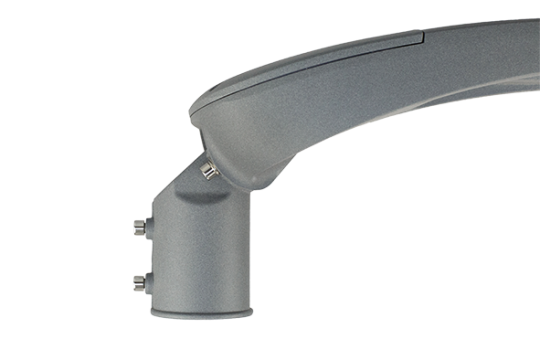 Hliníkové tělo, odolné vůči povětrnostním vlivům. Skleněný kryt, nerez šroubení. Nastavitelný úhel sklonu (-10° až +90°). Pro výložník s průměrem 60 mm. Včetně 50 cm propojovacího kabelu.