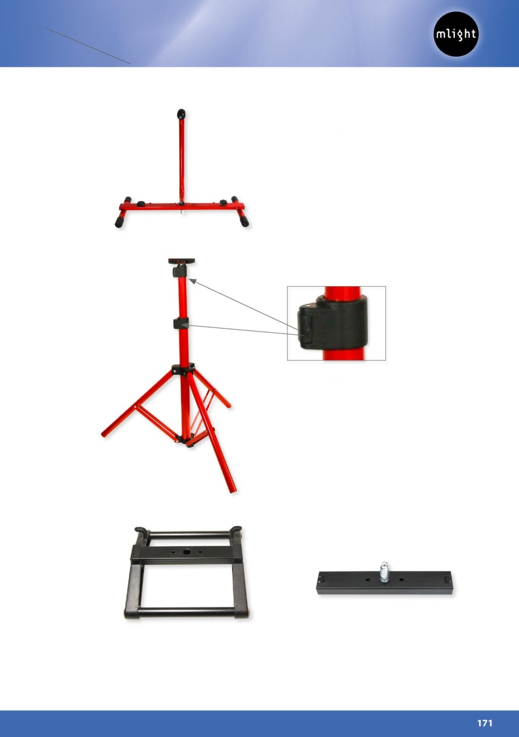 Stojan pro uchycení 2ks reflektoru. Lze jej použít jako celek nebo sejmout pouze horní část a využít jako ruční přenosný stojan.