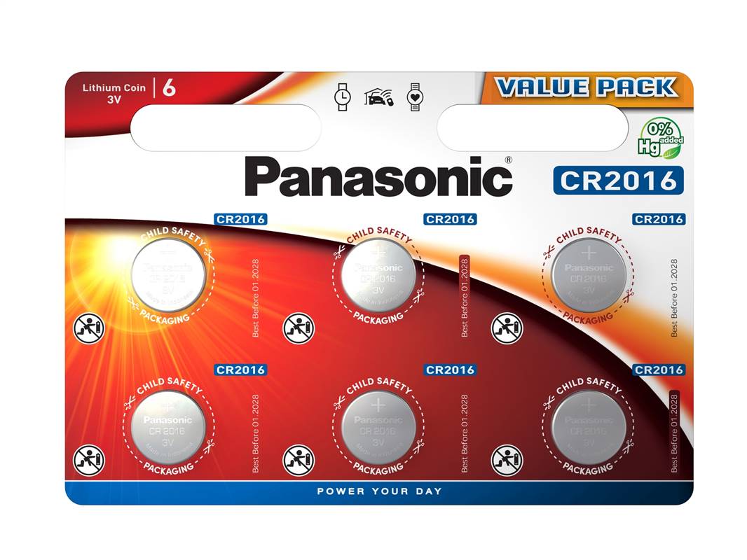 Knoflíková baterie Panasonic CR 2016 (CR-2016) 3V, lithium, nedobíjecí. Rozměry baterie (tloušťka x průměr) 1,6 mm x 20mm.
