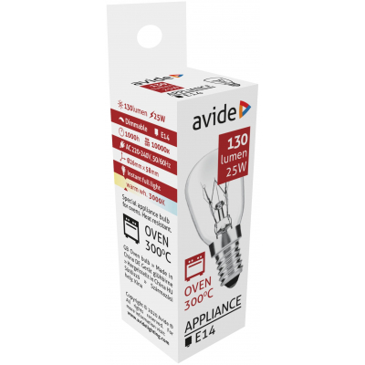 Žárovka do 300°C s příkonem 25W a světelným tokem 150lm je určena pro pečící trouby, ať už se jedná o elektrickou, plynovou, či mikrovlnnou troubu s malým závitem E14.